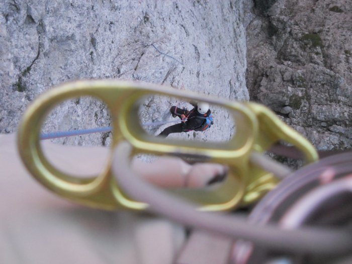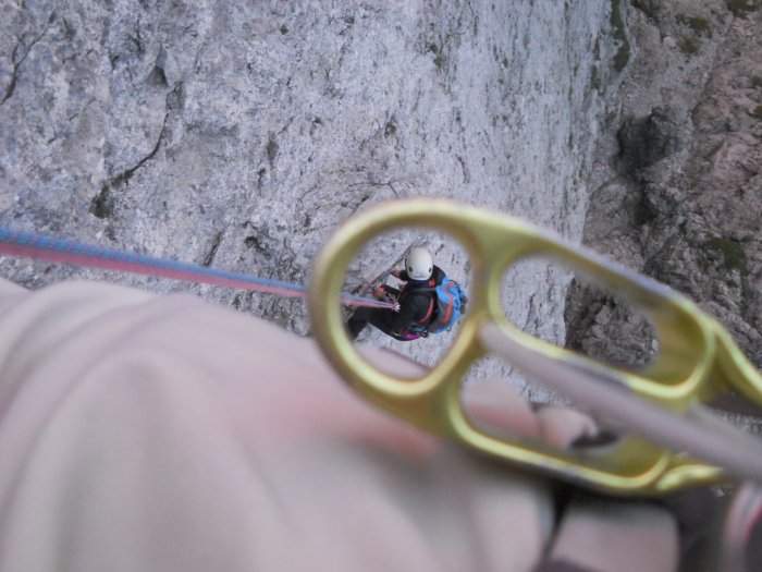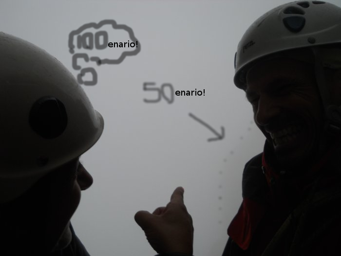 "Si ok! Però il 5c untissimo ed emozionante...e l'uscita dal diedro in strapiombo? Poi la lama di 6a+... Dai che ne ho abbastanza per questo!".