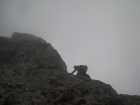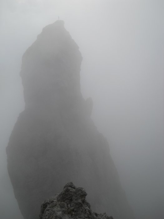 Sbatte la porta del rifugio che tra le nuvole che si diradano comincia a comparire...pregusto già la birra che berrò in rifugio ora che ho dimezzato il viaggio tra i due fittoni resinati lucenti!