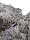 Grazie GM! La spaccatura a destra del canale sembra offrire ottimi appoggi per i piedi e rendere tutto più facile ma è davvero malconcia e ridotta in brandelli pronti a staccarsi.