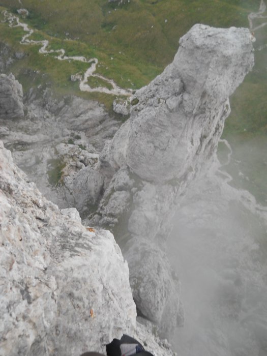 Mi sposto a sinistra come vuole il "manuale del passo chiave della via" e vedo quella clessidra che per me fu la dipartita e la salvezza da caduta sicura...il fantasma dei ricordi...