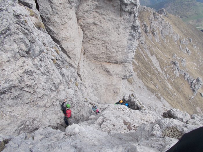 Arrivo su, Facciamo due chiacchiere, poi lascio scendere la cordata di Biellesi, monto la sosta, fisso la corda e do i comandi agli Inv che sanno benissimo cosa fare!