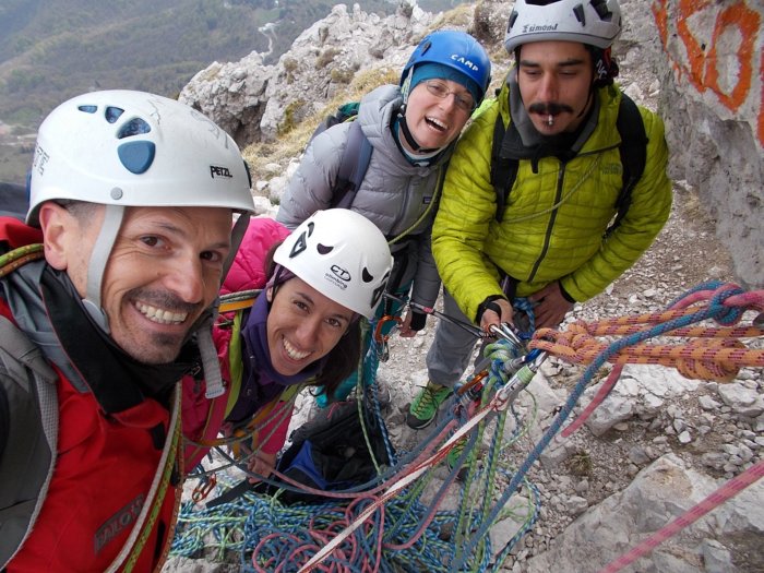 Salgono e siamo tutti contenti, riuniti in sosta, almeno sulla vetta da cui si può solo godere finchè poi saremo giù, ognuno con le sue cose a cui pensare fino alla prossima volta in cui una parete ci oscurerà lo sguardo finchè si arriverà di nuovo in cima in questo ciclo di cui è meglio non cercare il senso ma solo goderne quando si può.