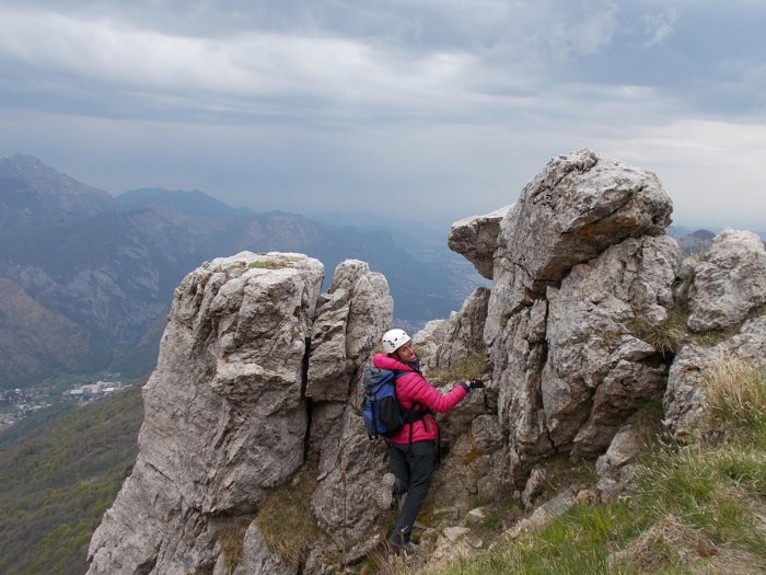 Saliamo per la cresta Cermenati e mostro ai ragazzi i passaggi del sentiero che una volta trovavo esposti, pericolosissimi e determinanti! Oggi, nella mia quasi inspiegabile versione nuova e aggiornata, ci scherzo anche se comunque son posti da cui non bisogna volar giù! Silvie poi mi ricorderà che il Toso, questa la chiama:"Ste, versione 2.0" in una sua bellissima relazione di arrampicata...