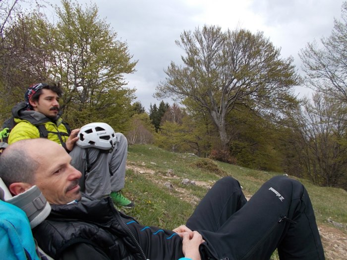 Durante il viaggetto discutiamo dell'uscita del corso di alpinismo prevista per domenica...ne discuteremo anche mentre ci scaliamo un paio di tiri e decidiamo che sarà quasi certamente da rInviare causa pioggia...