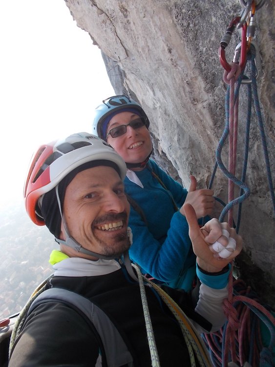 E' stato bello preparar la via, mettere insieme la relazione cartacea, avere un progetto a cavallo del 2016-2017, sperare di guarire dai malanni di dicembre, pedalare i giorni prima insieme alla figlia dell'apritore di una via in Medale e rimembrare ancora quando passavo dal tornante di Malavedo e guardavo in su, quella parete che mi sovrastava e mi spaventava, da piccino così come da "grande".