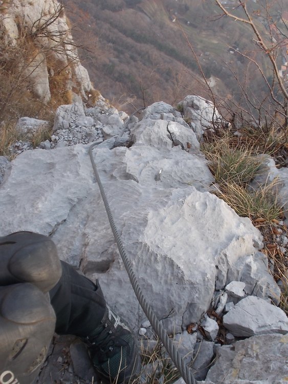 Su dalla ferrata fino in cima al Medale e poi giù, prima verso il San Martino e poi ancora giù nel canale del Medale ben indicato da un ometto di pietre ben fatto!
