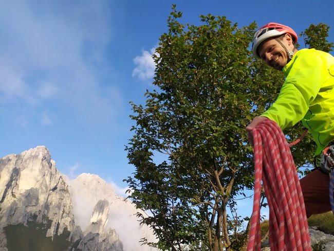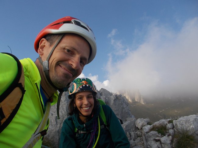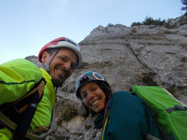 Le poche cose che mi sento di aggiungere sono il clima meraviglioso di quella parete e poi vorrei spezzare una lancia nei confronti del bellissimo spigolo. Molti lo disdegnano per la qualità della roccia ma ho visto di peggio e su vie ben più rinomate.