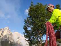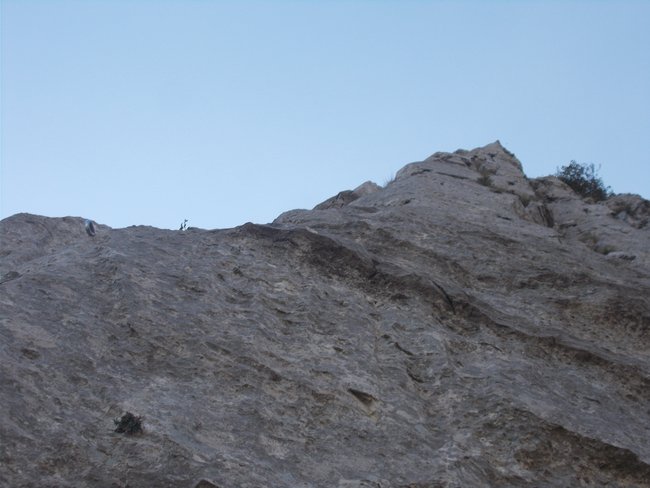 Per il resto raccomanderei certamente di evitare tale itinerario il sabato e la domenica o comunque nelle giornate e soprattutto negli orari di alta frequentazione del sentiero delle Foppe che passa esattamente sulla linea di caduta di eventuale materiale o sassi. Noi, come accade quasi sempre non abbiamo mosso una virgola dalla parete ma, effettivamente il rischio c'è e avere al di sopra una cordata disattenta non deve essere simpatico!