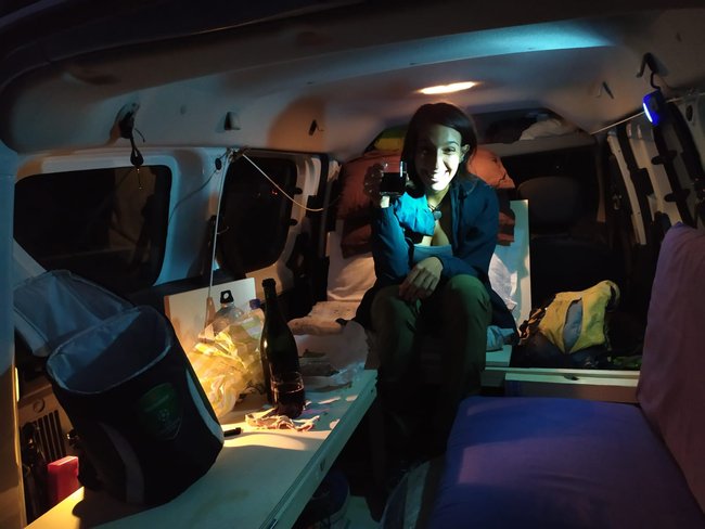 E, se tutto andrà bene, stasera festeggeremo innaugurando seriamente il mio nuovo mini-camper artigianale con pane, salame e nebbiolo promesso e ripromesso a Nau in caso di via Mir al Pertusio!