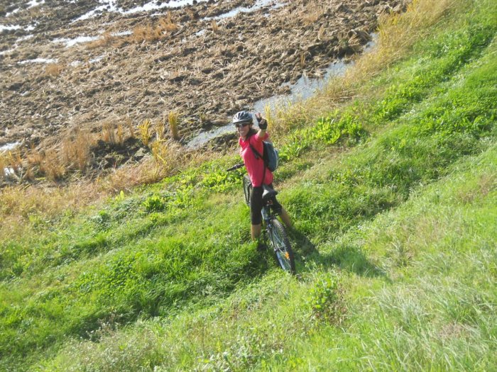 Sono nella situazione migliore, in bici, contento ed euforico che alla prima discesa ripida su un terrapieno dell'Alzaia del Naviglietto di Bereguardo mi fiondo giù a cannone e ...vuole provare anche lei!!!