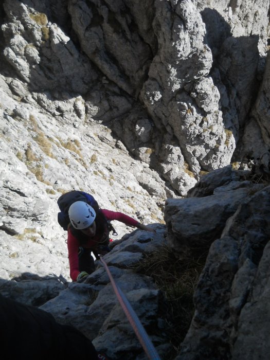 So che il tiro comunque è lungo e l'ultima rampetta è facile ma molto esposta e l'uscita l'altra volta l'avevo sbagliata e ravanata un po'.