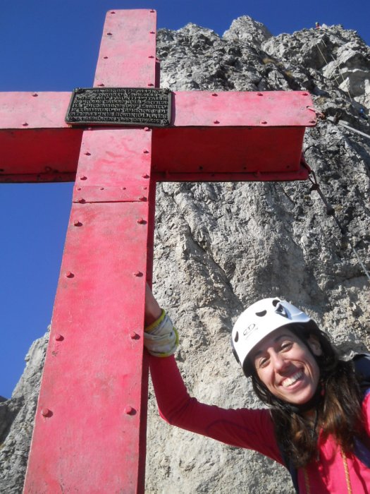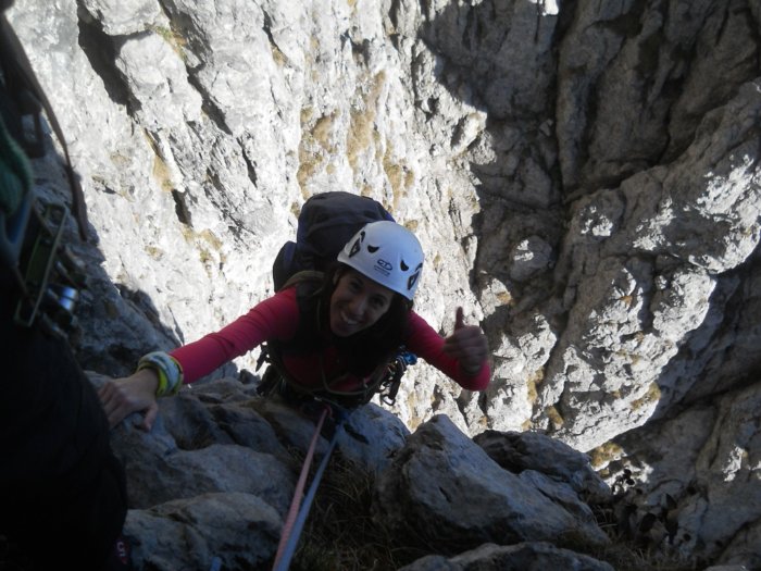 Seppur in falesia faccia già il 6a da prima e spesso a vista, è solo la terza via che fa in Grignetta, l'ambiente del camino tra Sigaro e Magnaghi è impressionante e avvolgente ma lei scala come una macchina! Una macchina che però si emoziona e gode di questo