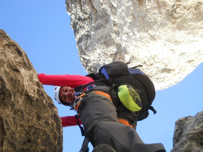 Arriva Silvy dopo che grida yuhuuu man mano che esce sullo strapiombo con il nulla sotto...lo zaino!!!