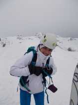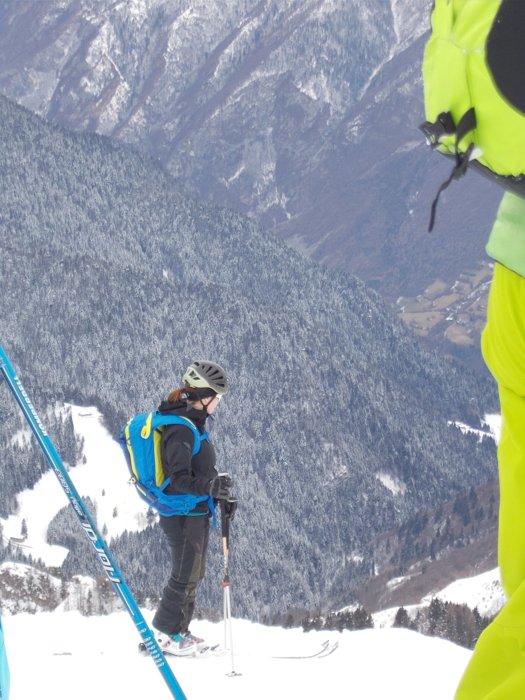 Una volta spellato (entrambi gli sci!!!), fatta la foto di vetta e girati i tacchi, il pendio iniziale mi fa un po' impressione...