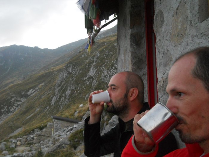 Conosciamo Vittorio della baita Comolli, brindisi vari e ci salutiamo, poi ce ne andiamo a consumare l'ottima cenetta.
