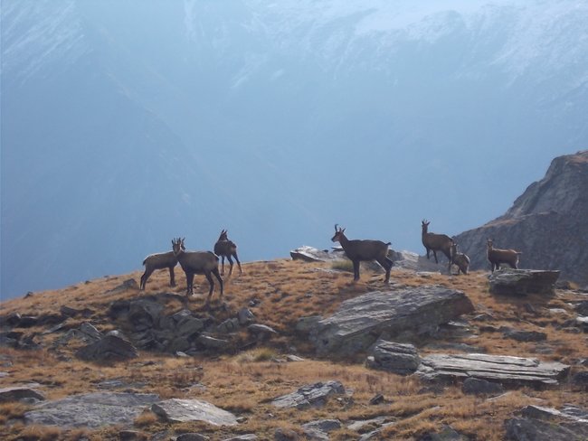 Salendo alla Finestra di Champorcher ho visto le Pernici "Leopardate" in muta, perfettamente mimetiche con la pietraia sporca di neve, poi marmotte chiare e grasse come porcelli e poi ancora le stambecche con i piccoli.