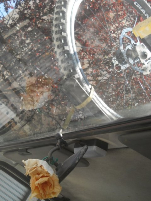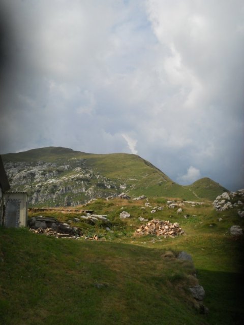 Anche la stradina che attraversa il pianoro dietro il rifugio è sassosa e un sasso, gentilmente tirato su dalle mie gomme/cingoli, spacca una fascetta del parafango.