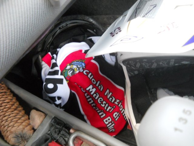 Alle 12:30 la voglia ha già fatto saltare il tappo e zainetto, barrette, integratori, 15€ per la benzina, altri 15 per chissà che, caschetto, guanti, occhiali, vestiti leggeri, medi e casco integrale occupano il tavolo della cucina insieme a buon umore, fame, 150gr di pastasciutta con sugo di verdure fresche appena colte e una bella insalatona.
