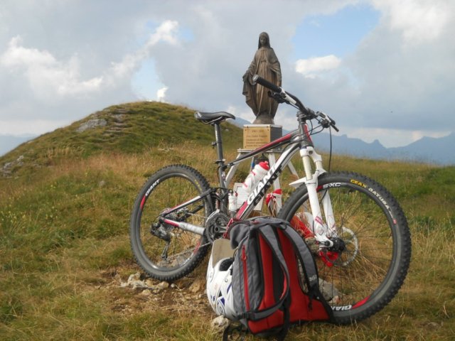 La dimentico mentre pedalo deciso anche nell'ultimo tratto ripidissimo, quasi al limite ed eccomi al cospetto della Madonnina che da qui vicino non fa così impressione come prima!